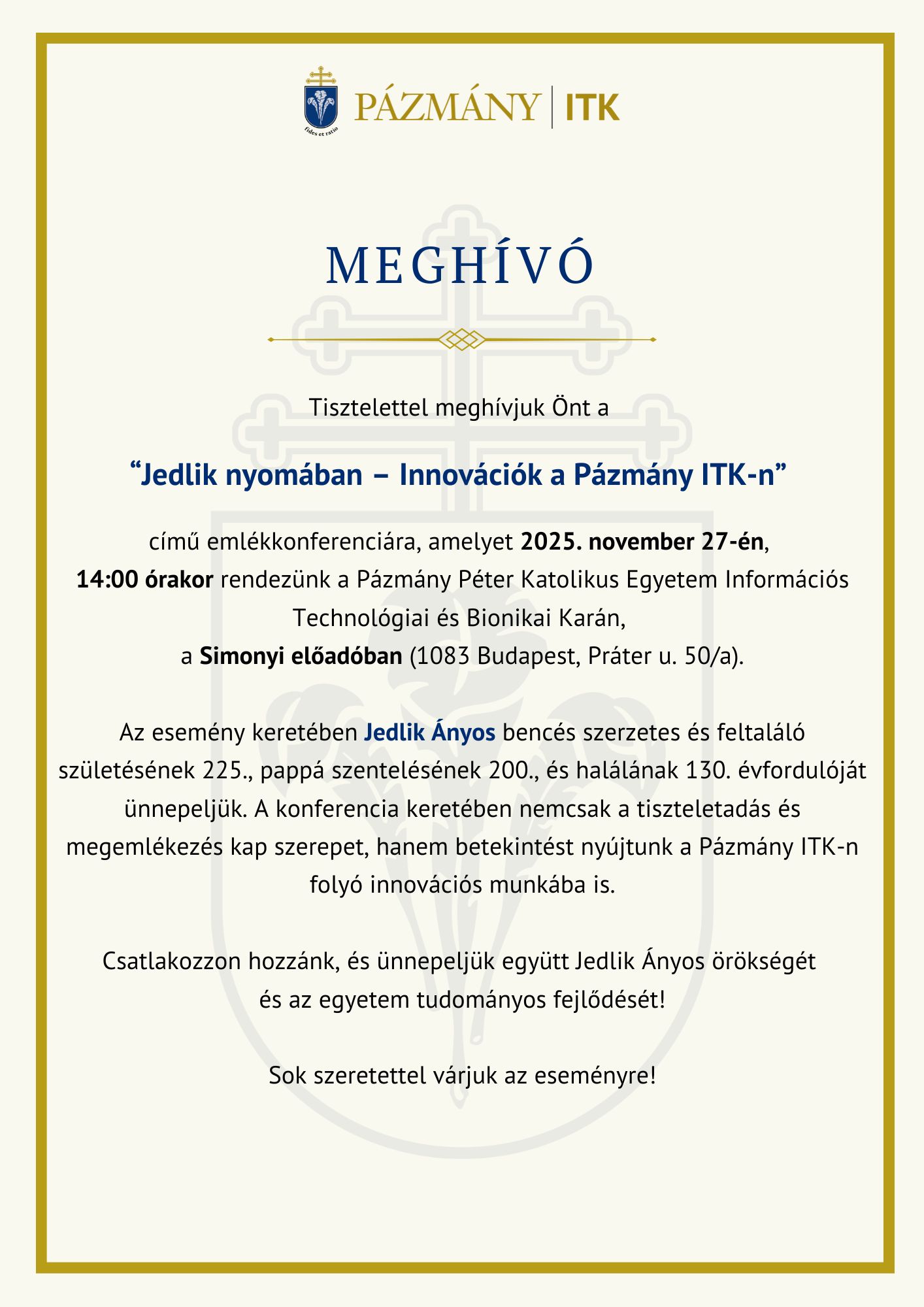 A Magyar Tudomány Ünnepe rendezvénysorozathoz csatlakozva megrendezésre kerül Karunkon a Jedlik Ányos emlékkonferencia, 2025. november 27-én.